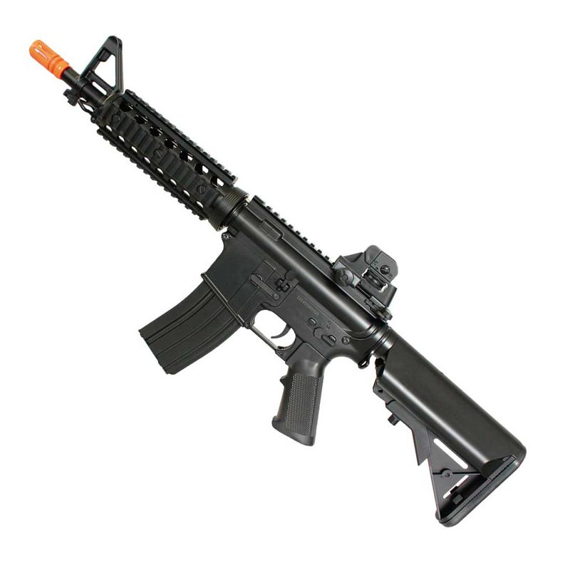 O CM506 da Cyma é um rifle completo e preço acessível. Fabricado na plataforma do M4A1 curto, para ambientes CQB (cenários fechados), mas de escala real.