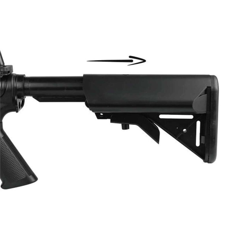 O rifle CM506 M4A1 CQB possui massa de mira fixa e alça de mira ajustável e removível para que você possa colocar uma mira optrônica ou red dot.