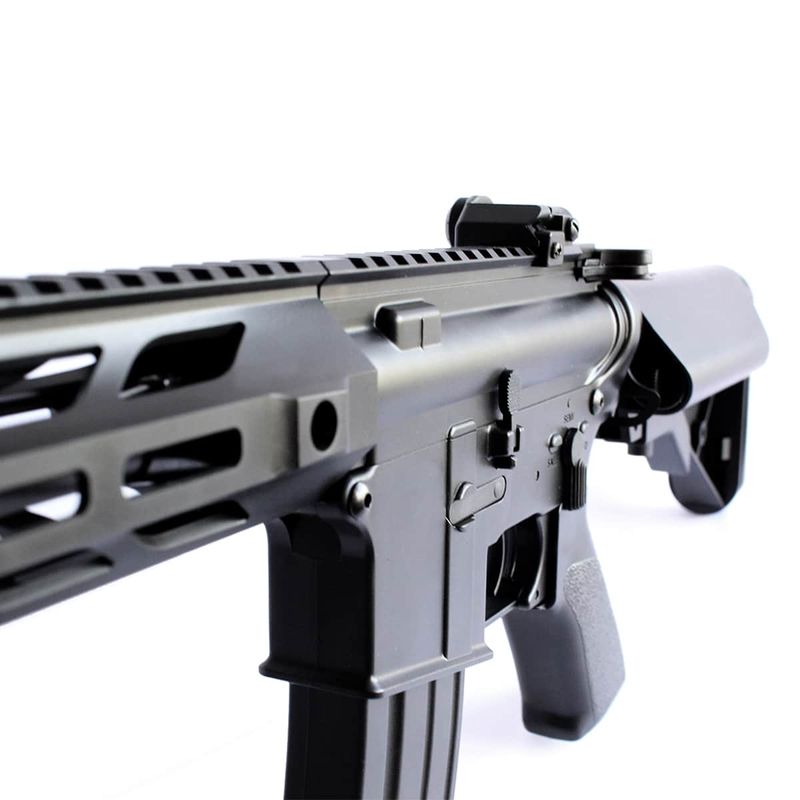 O Rifle AEG CM.518S da Cyma conta com acabamento em polímero de alta qualidade, proporcionando mais leveza durante sua operação. Também dispõe da tecnologia de sistema de gatilho eletrônico (ETU) e Mosfet da G&G, que, além de aumentar muito o desempenho, agilidade e sensibilidade nos disparos, permite a utilização de baterias de maior voltagem sem risco de danificar seus componentes eletrônicos, garantindo assim uma performance superior.