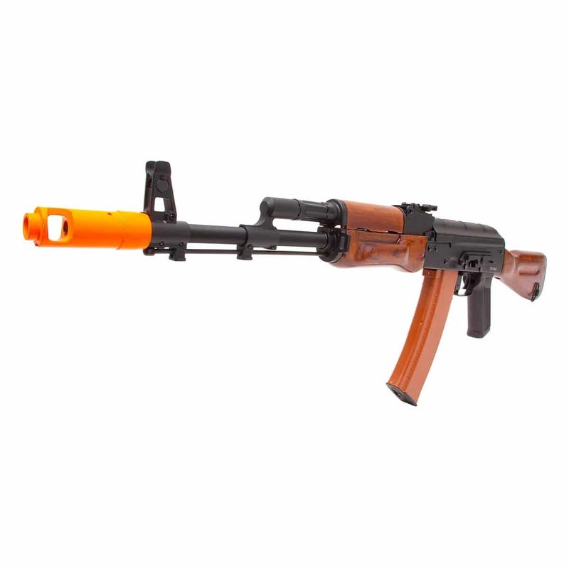 Este modelo é uma réplica fiel do AK47 original, com corpo inteiramente em metal e aço, handguard e coronha em madeira de alta qualidade, além de peças internas reforçadas, oferecendo excelente desempenho, durabilidade e realismo.