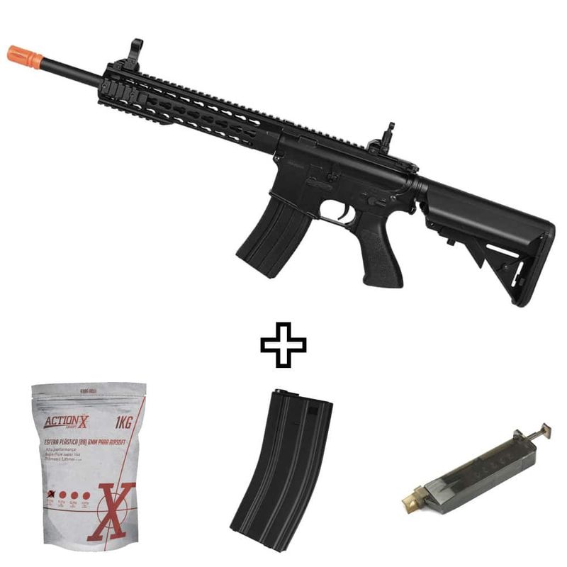 Seja em partidas no campo ou em prática no quintal, o CM.515 oferece flexibilidade e compatibilidade com qualquer magazine M4 padrão, sendo uma excelente opção para quem está começando.