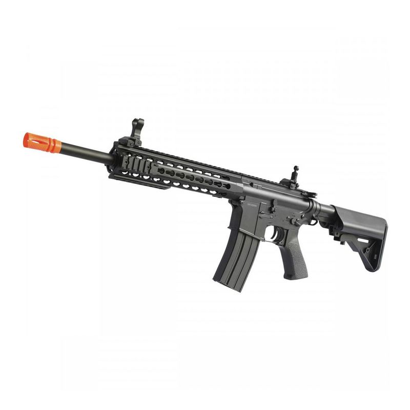 • Características: Alma lisa, Gearbox versão 2 full metal, Hop-Up ajustável, trilho Keymod RIS completo