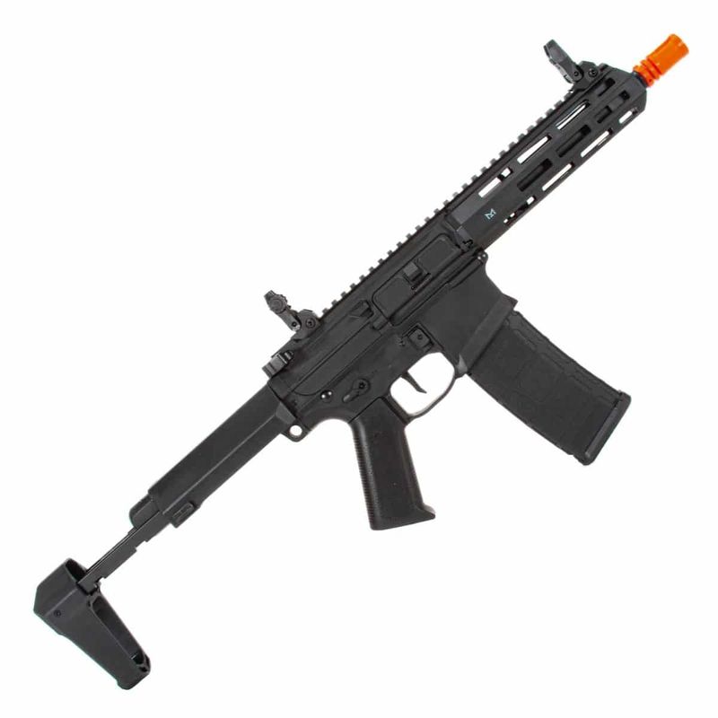 Mecanismo da caixa de engrenagens V2 com um sistema de troca rápida de mola montado em rolamentos de esferas de aço de 8mm e HopUp rotativo. Além disso, como padrão, essas réplicas são equipadas com um sistema de controle eletrônico Falcon com modo de disparo programável (Double Shot no modo SEMI ou 1-5 Round Burst no modo AUTO), ajuste de sensibilidade do gatilho (3 modos) e proteção do motor e bateria.