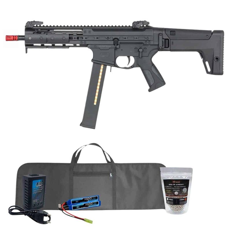 + Carregador B3 + 2.000 BBs de Airsoft + Bateria Lipo 7.4 1100m Ah + Capa com forro