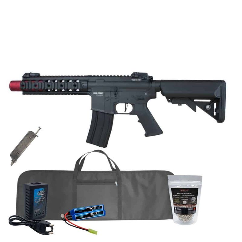 + Carregador B3 + 2.000 BBs de Airsoft + Bateria Lipo 7.4 1100mAh + Capa com forro + SpeedLoader 90 BBs