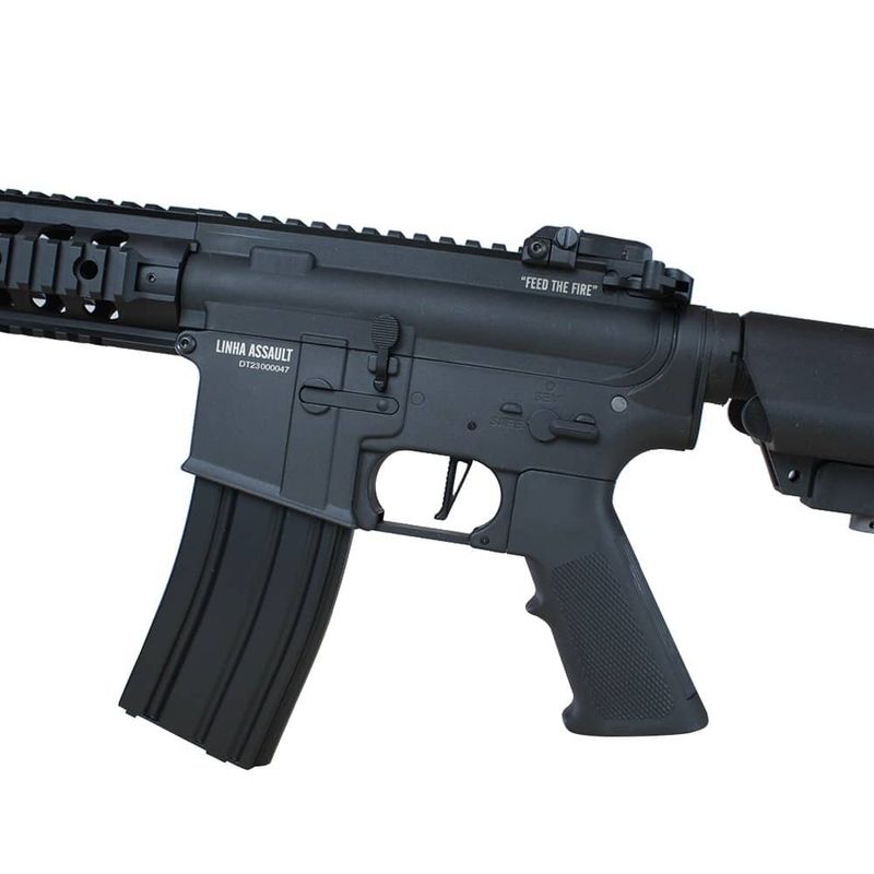 O Rifle Airsoft TAG Delta permite que você escolha entre os modos de disparo automático e semi-automático, oferecendo flexibilidade tática em campo. Seu sistema de gatilho elétrico não programável proporciona uma resposta rápida e precisa a cada disparo.