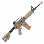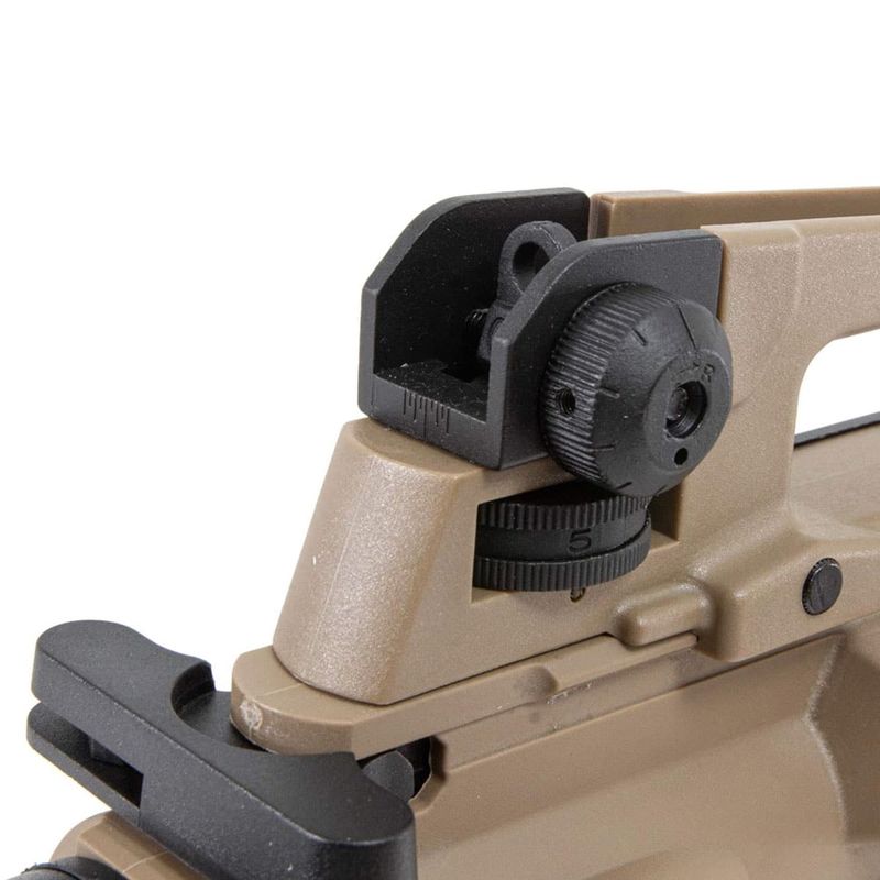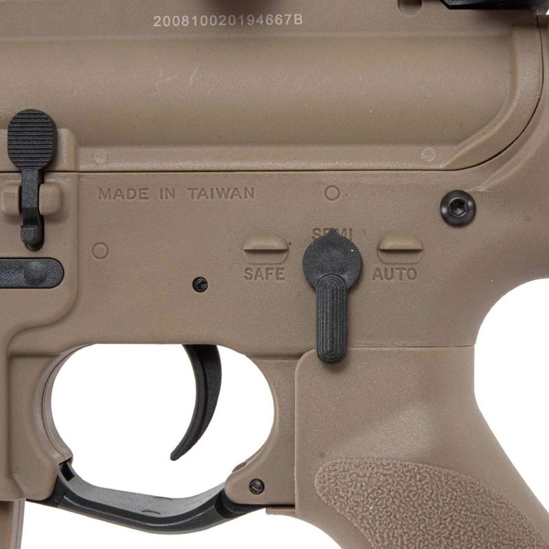 Oferecendo maior realismo em campo, seu funcionamento é elétrico, alimentado por bateria (estocada na coronha traseira).