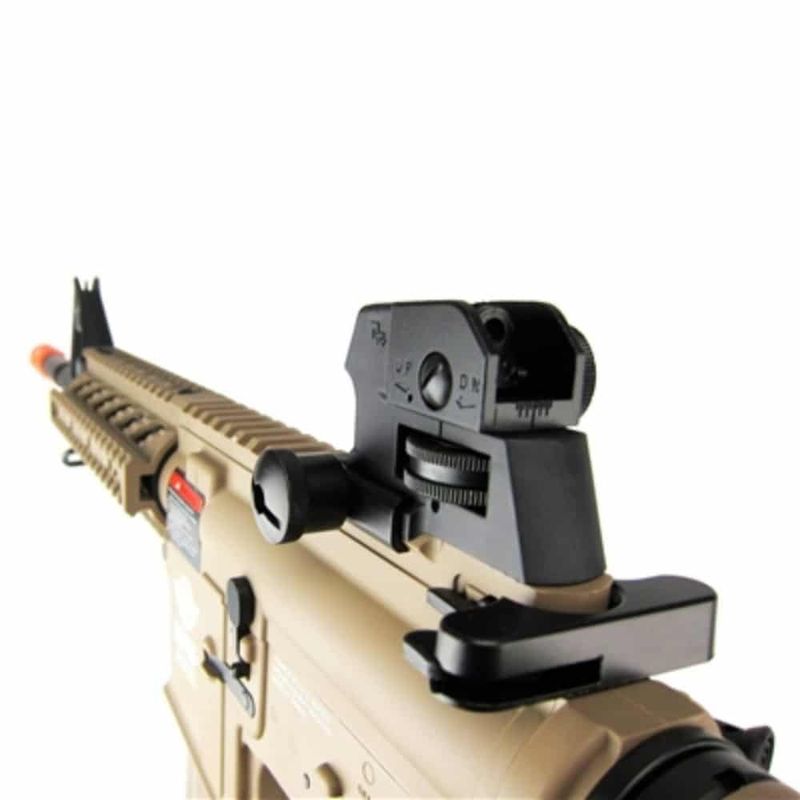 Este Rifle de Airsoft tem o corpo em polímero de alta densidade, evitando cansaço excessivo durante as partidas.