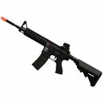 Baseado na consagrada plataforma M4, este rifle conta com um corpo em polímero de fibra de nylon de alta resistência, cano metálico, tubo de amortecimento metálico, engrenagens internas reforçadas e Gearbox V2 em metal.