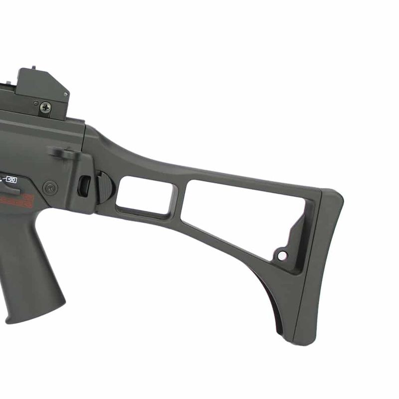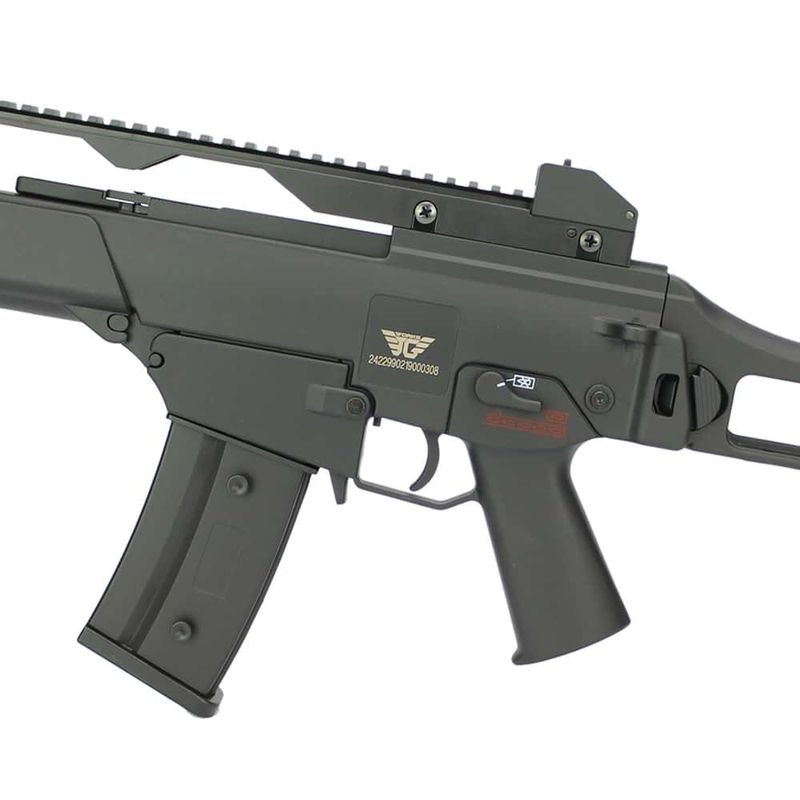 Pesando 2,85 kg e com velocidade média de 360 FPS com BBs 0,20g, a G36 possui três modos de disparo: safe, automático e semi-automático.