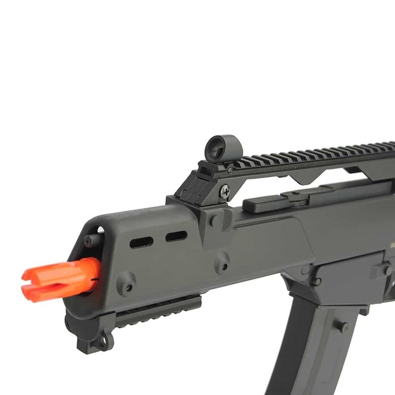 O Rifle de Pressão Airsoft AEG G36 Curta 6mm G608 é produzido em polímero de alta densidade, possui trilho inferior em metal e carry handle removível.
