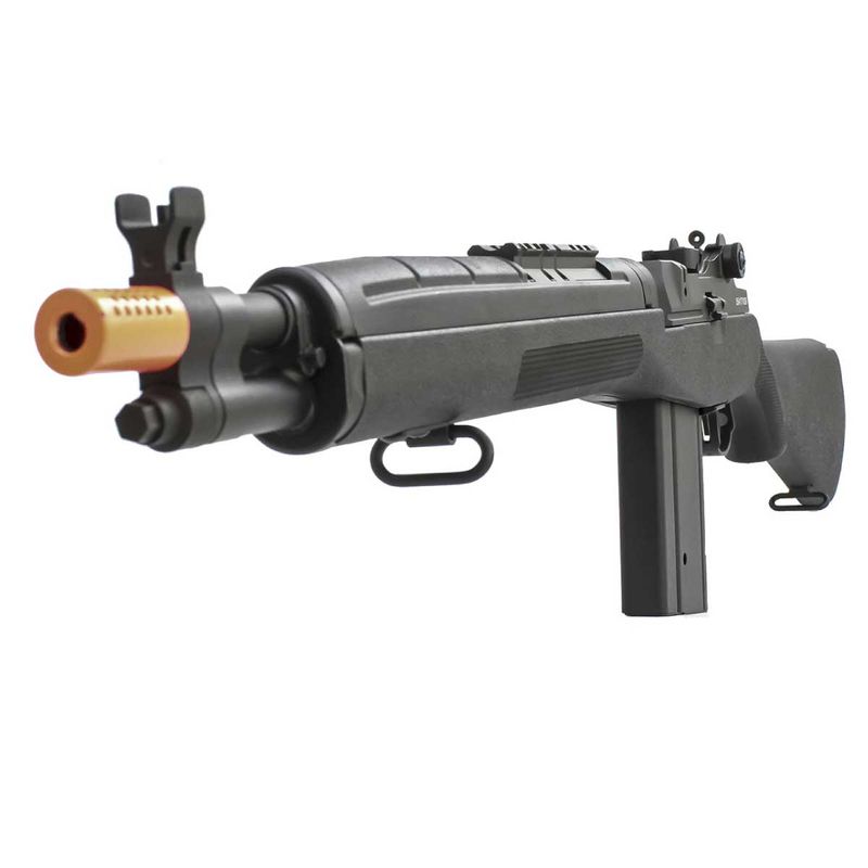 Já a versão de airsoft, trazida pela Cyma como o modelo CM032A, é uma arma muito fiel à sua versão original e possui um manuseio muito simples, uma pegada bem robusta e uma precisão incrível.
