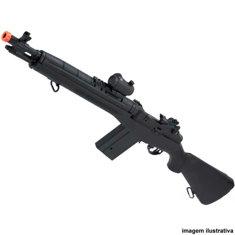 O Rifle Airsoft M14 Socom CM032A Cyma AEG 6mm dispara no modo Semi e Full Automática com velocidade de 360fps - 110m/s e energia de 1,2 Joules Ver mais