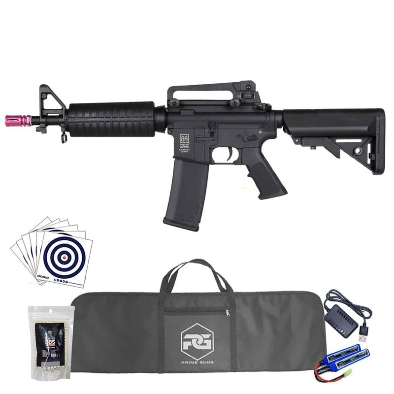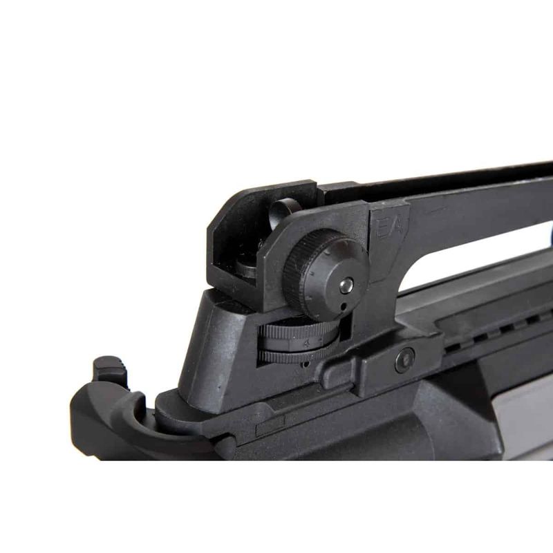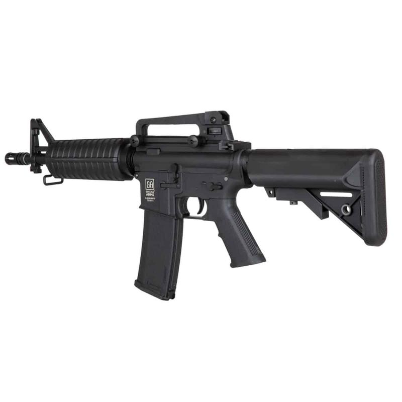O Rifle M4A1 Carbine SA-C02 da Specna Arms possui uma velocidade média de 370 FPS (116 m/s) com BBs de 0,20g, padrão para jogos em ambientes Milsim.