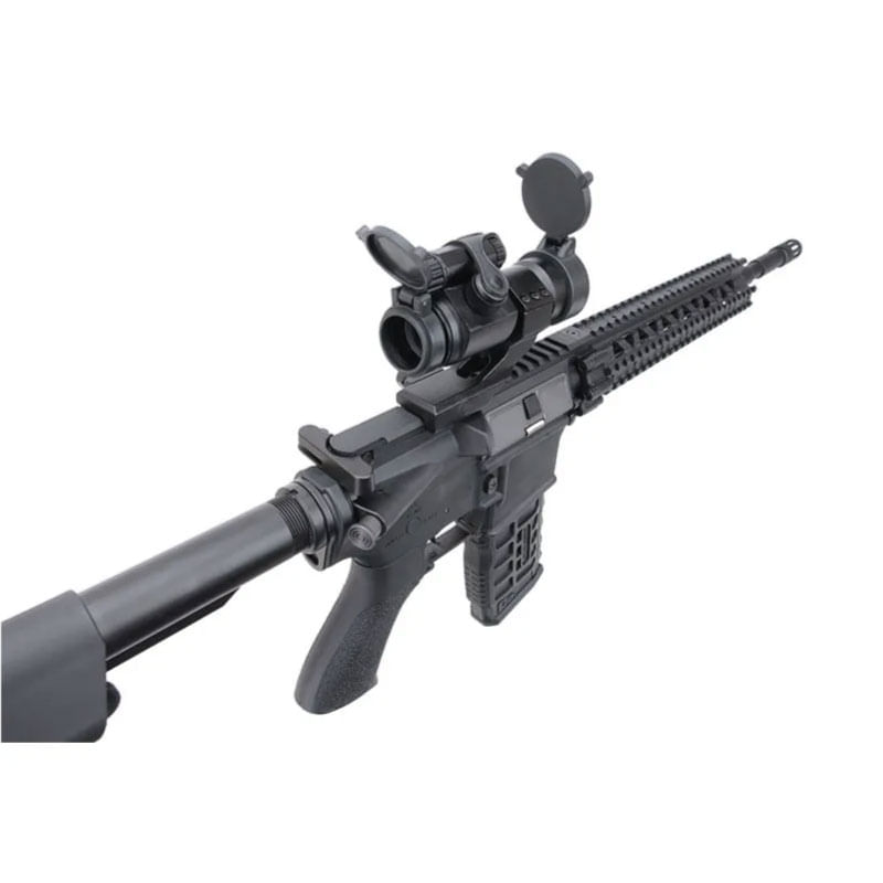 Com velocidade de 370 fps com BBs de 0,20 g, o modelo se assemelha a um rifle híbrido entre M4 e sniper, podendo ser muito bem utilizado como DMR (atirador designado).