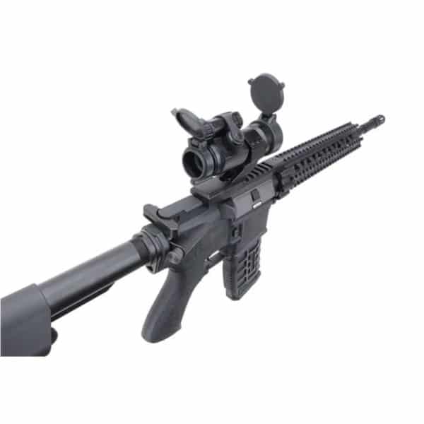 Construção de polímero reforçado com nylon de alta resistência Full Length RIS Handguard Regulagem do torque do motor Coronha telescópica Red Dot incluído Zarelho para bandoleira de um ponto