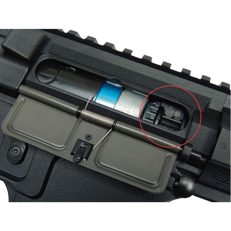 Seu Hop-Up permite um rápido e fácil ajuste de altura de tiro, o que é excelente para ajustar a arma ao tipo de munição e ambiente. O Hop-Up força a rotação das BBs para cima, aumentando a distância do tiro.