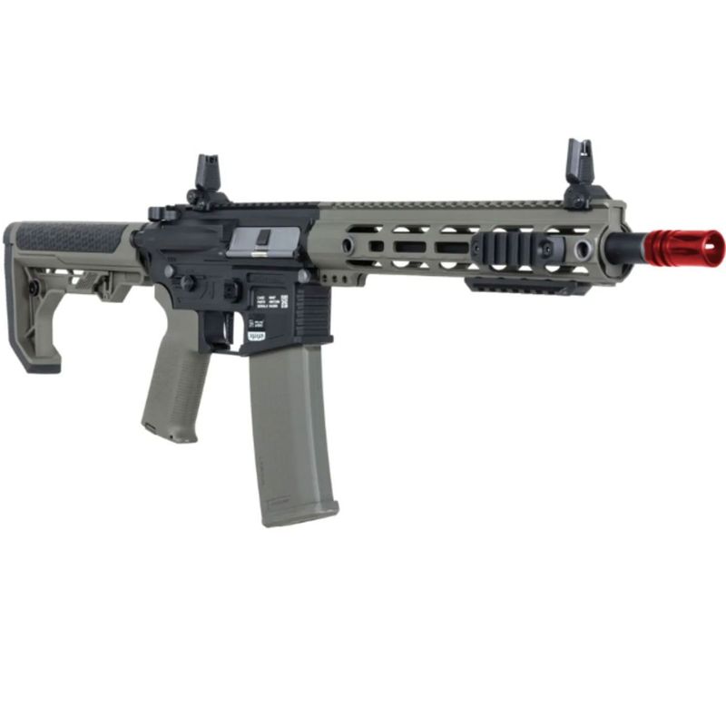 O cano externo possui projeto exclusivo da Specna Arms, combinando estética e ergonomia, enquanto os comandos ambidestros, manipuladores ampliados e bolt catch funcional elevam a praticidade e o realismo do conjunto.