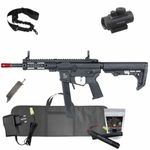 + Carregador B3 + 2.000 BBs de Airsoft + Bateria Lipo 7.4 1100mAh + Capa com forro + Red Dot 1×30 + Bandoleira de 1 ponta + SpeedLoader 90 BBs