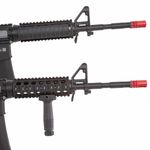 O rifle acompanha front grip texturizado para melhor empunhadura em tiros táticos e de precisão, cano de precisão de 6.03mm, zarelho ambidestro e mosfet já instalado de fábrica.