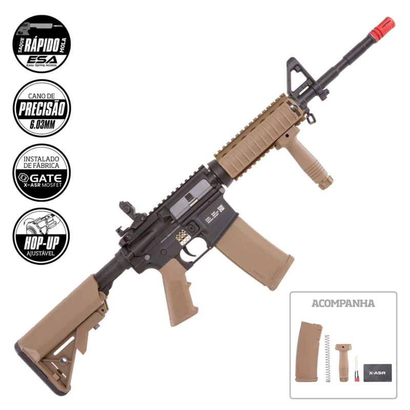 O Rifle Airsoft M4 SA-C03 Dual TAN C-Series Specna Arms KIT dispara no modo Semi e Full Automática com velocidade de 380fps - 116m/s e energia de 1,2 Joules Ver mais