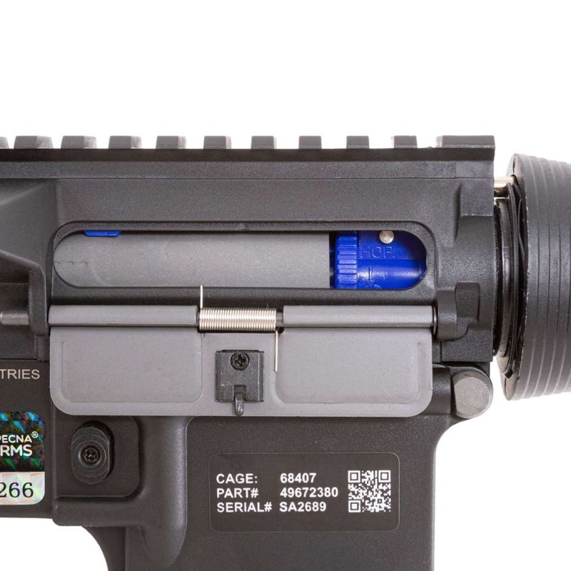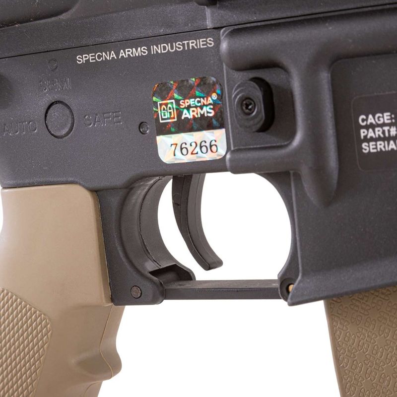A Specna Arms é rigorosa no seu controle de qualidade e realiza diversos testes nos equipamentos. Por isso acompanham um selo holográfico na embalagem e na arma como certificado de qualidade, contendo as informações dos testes realizados na amostragem, inclusive o número de série individual.