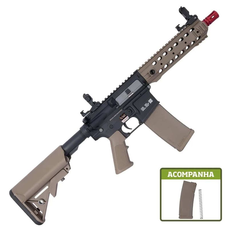 O SA-F01 HALF-TAN é um rifle airsoft elétrico compacto, com visual moderno na cor Tan, projetado para oferecer alta performance tanto em CQB quanto em campos abertos.