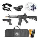 Pistola : 150 fps - Rifle M4A1: 220 fps Rifle: 0,5 Joules - Pistola: 0,2 Joules Pistola: 11 BB's - mid-cap - Rifle: 17 BB’s com reservatório para + 250 BB’s Fabricados em Polímero ABS de alta resistência, é seguro dizer que ambos possuem um peso equilibrado.