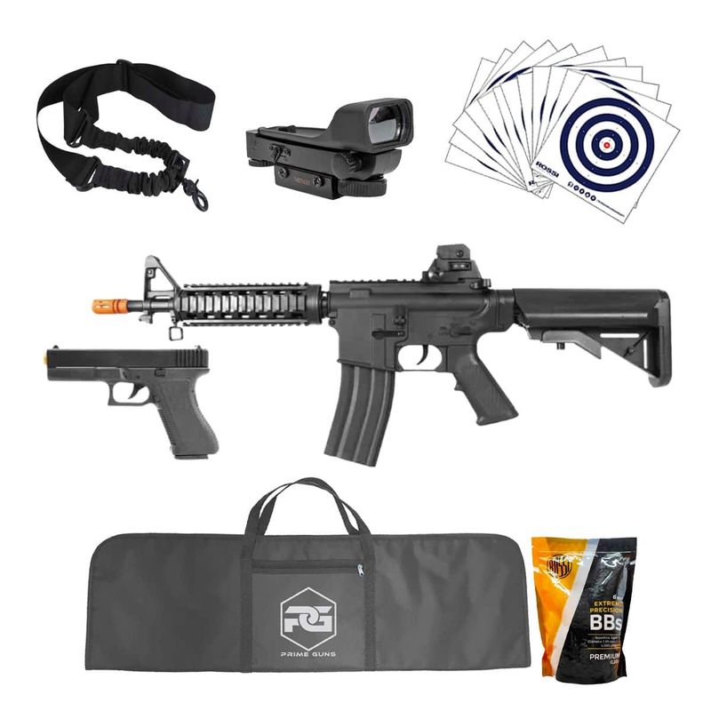 O Kit Rifle Airsoft M4A1 e Pistola V307 Mola Spring Vigor 6mmé perfeito para quem está buscando conhecer o universo do Airsoft, como também para aqueles que desejam garantir o lazer de final de semana com a família. O equipamento pode ser operado por crianças a partir de 8 anos, desde que tenha supervisão de um adulto por perto.