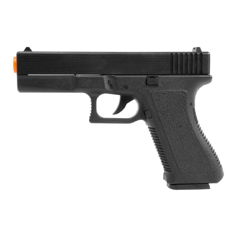 A Pistola Airsoft Mola Spring V307 Vigor 6mmtemação single shot/monotiro de disparo manual por spring/mola com engatilhamento através do deslizamento do slide/ferrolho para efetuar cada disparo. Sua visada fica por conta da alça e massa de mira fixas. Dispõe de travas não funcionais, handgrip texturizado, botão de liberação do magazine, cuja capacidade é de 11 BB’s.