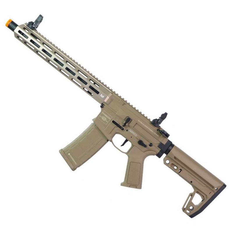 O Rifle Airsoft Punisher 3 TAN Poseidon M4 PDW 6mm dispara no modo Semi e Full Automática com velocidade de 429fps - 131m/s e energia de 1,4 Joules Ver mais