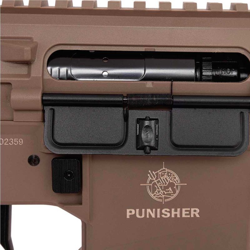 O rifle Punisher 3 TAN possui trilho superior picatinny de 22mm, tendo 46c, de comprimento, o que oferece um amplo espaço para utilizar acessórios de miras, como lunetas, Red Dot e até Magnifier, de acordo com seu gosto ou estilo de fogo.