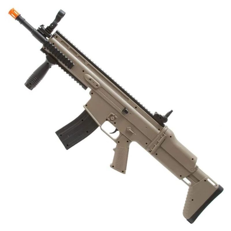Inspirado no icônico fuzil de assalto FN Scar, o Rifle Spring Scar-L VG 8902A Tan é uma excelente escolha para iniciantes que procuram um equipamento robusto, funcional e com visual extremamente realista.