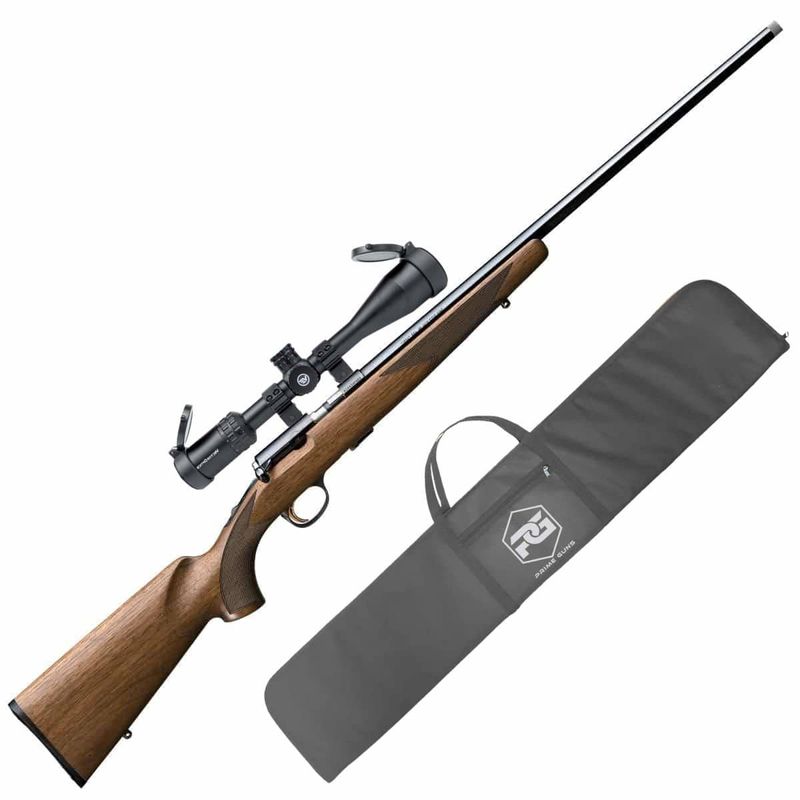 O Rifle Browning T-Bolt Sporter Madeira .22LR + Luneta 4-16x44 dispara no modo Repetição (Side Lever) com velocidade de e energia de Ver mais