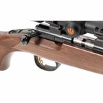 A coronha estilo Monte Carlo, combinada com a placa de recuo em plástico, proporciona um encaixe perfeito e confortável ao ombro, reduzindo o impacto do recuo e melhorando a experiência do tiro. O gatilho leve e ajustável, folheado a ouro, permite personalizar o peso do disparo, oferecendo ao atirador a possibilidade de ajustar o rifle de acordo com suas preferências.