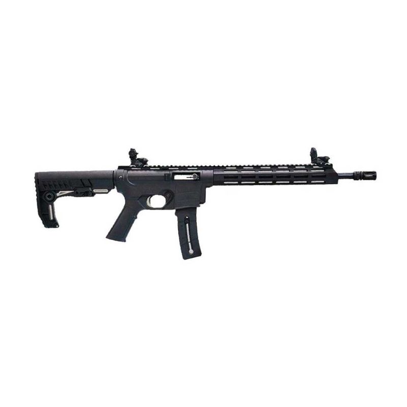 Calibre .22LR, cano 14,5" com quebra-chamas, sistema de funcionamento semiautomático, coronha tática retrátil em polímero com 6 posições, capacidade de 25+1 disparos, Trilho Picatinny e Guarda-mão MLOK (Modular Lock) para instalação de kits ópticos, lunetas e outros acessórios. Aparelho de pontaria composto por alça e massa de mira tipo Peep Sight. Acompanha bolsa tática. Peso: 2 kg.