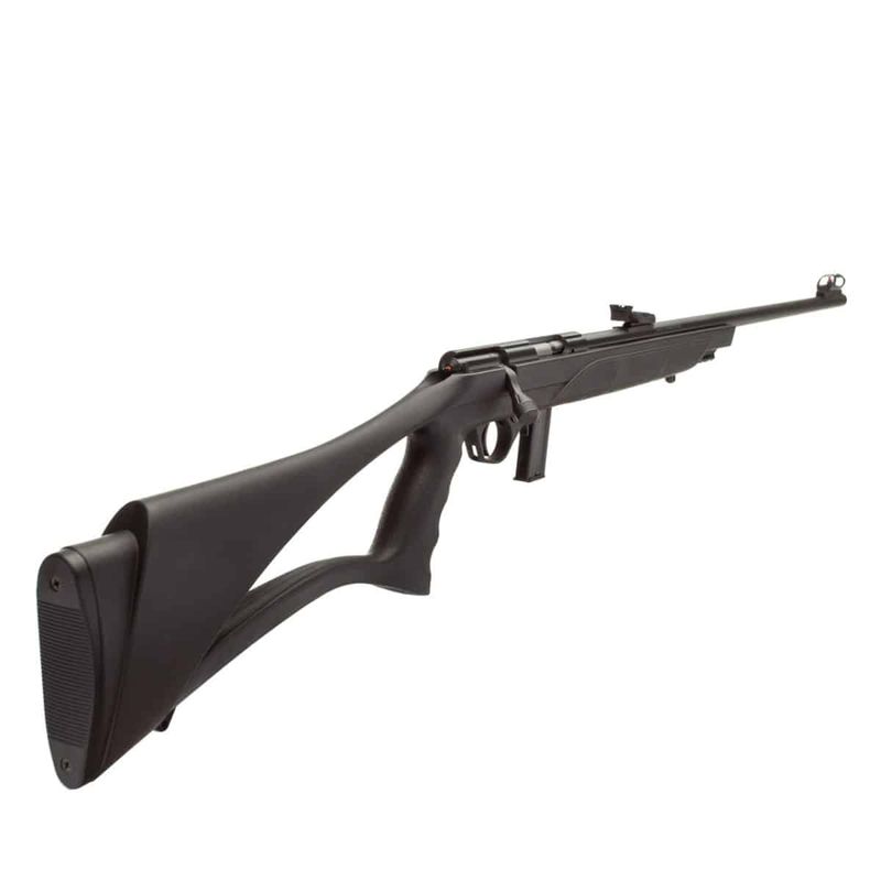Tipo de arma: Rifle Calibre: .22 LR Capacidade: 10 Tiros Cor: Preto Marca: CBC Modo de Disparo: Ação por Ferrolho, Bolt Action Peso: 2kg Tamanho do trilho: 20 mm Munição e Calibre: Munição .22 Categoria de Arma: Blowback: Características: Marca Licenciada: Armas CBC Força/Energia: 9 Joules Marca(s): Armas CBC Material: Propulsão: Velocidade: Modelo da Arma: