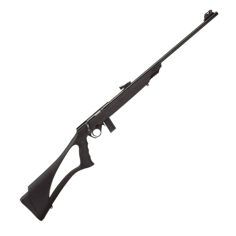 O Rifle CBC 8122 .22LR Bolt Action 23" Tungsten Oxidado Coronha Polímero dispara no modo Repetição (Ferrolho) com velocidade de e energia de Ver mais