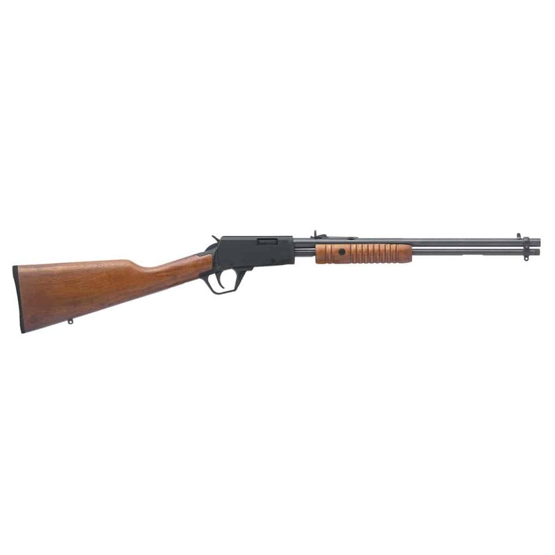 O Rifle CBC Pump Action .22LR 18" Oxidado Coronha em Madeira dispara no modo Repetição (Pump) com velocidade de e energia de Ver mais