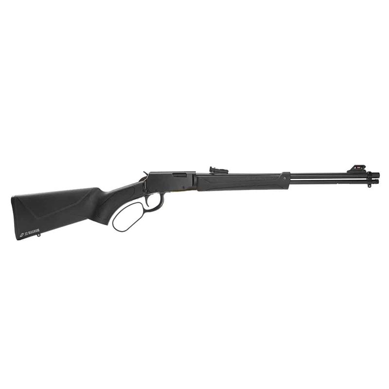 O Rifle CBC Rio Bravo .22 WMR 20" Oxidado coronha em Polímero dispara no modo Repetição (Lever Action) com velocidade de e energia de Ver mais