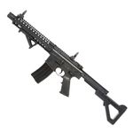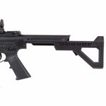 Possui coronha rebatível em seis posições diferentes, imitação de supressor embutido e trilho de 22mm Quad-Weaver / Picatinny na parte superior e no handguard — ótimo para colocar Red Dots, Lunetas, Bipé, Mira Laser e Lanternas Táticas. O rifle DPMS SBR permite você trabalhar muito bem com alterações estéticas e táticas.
