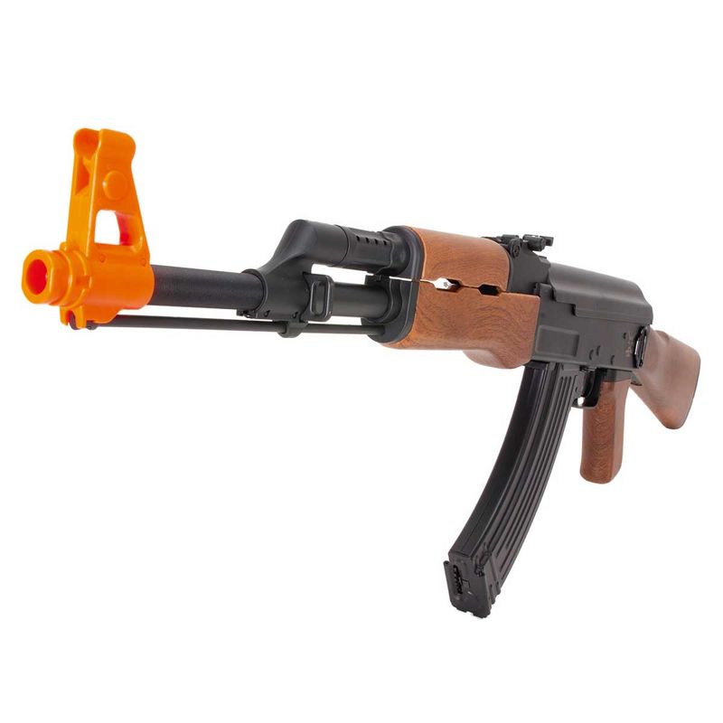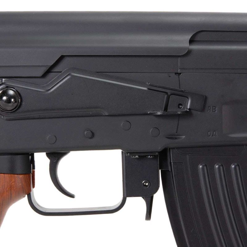 O rifle CM 522 AK-47 da Cyma possui um acabamento em polímero e detalhes externos em metal.