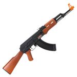 Criado em 1947 por Mikhail Kalashinikov, o modelo AK47 se mostrou uma verdadeira máquina de guerra, com eficiência e elegância. A versão Airsoft da Cyma CM522 Clássico oferece um acabamento que imita madeira.
