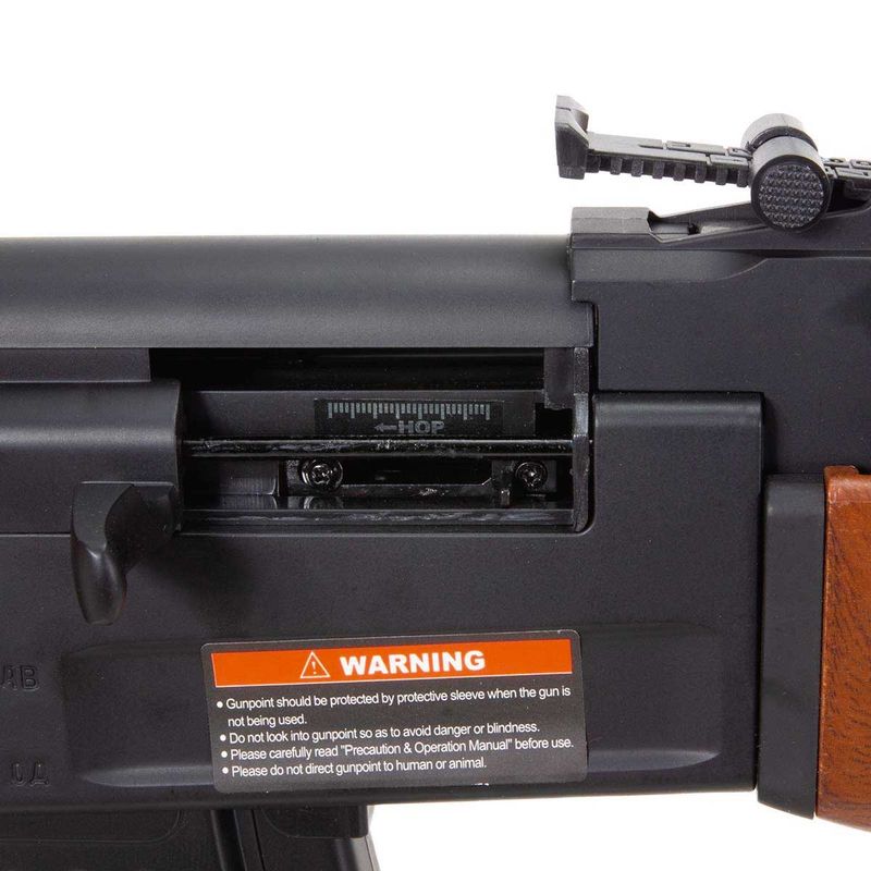 Como todo rifle airsoft de qualidade, o AK47 CM.522 possui ajuste do Hop-Up de forma simples, podendo ajustar a trajetória das BBs através do acesso ao ferrolho (câmara de ejeção).