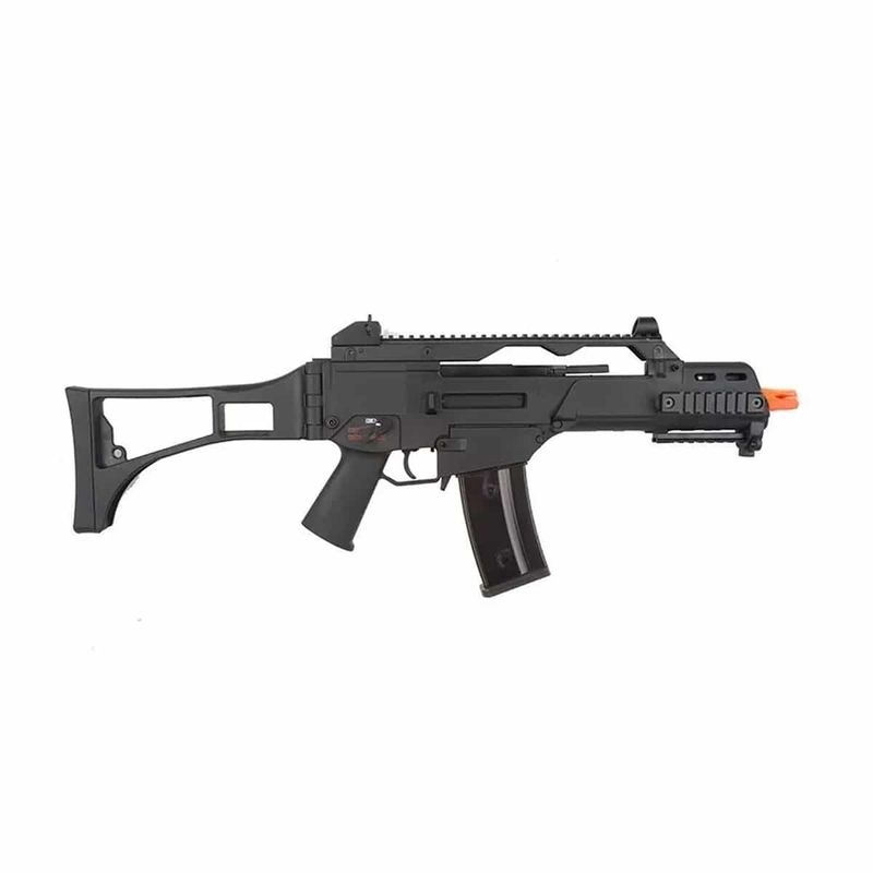 O rifle GBB HK G36C de airsoft dispara BBs .20g com uma velocidade de 350 FPS — 106 m/s com desempenho incrível e realista.