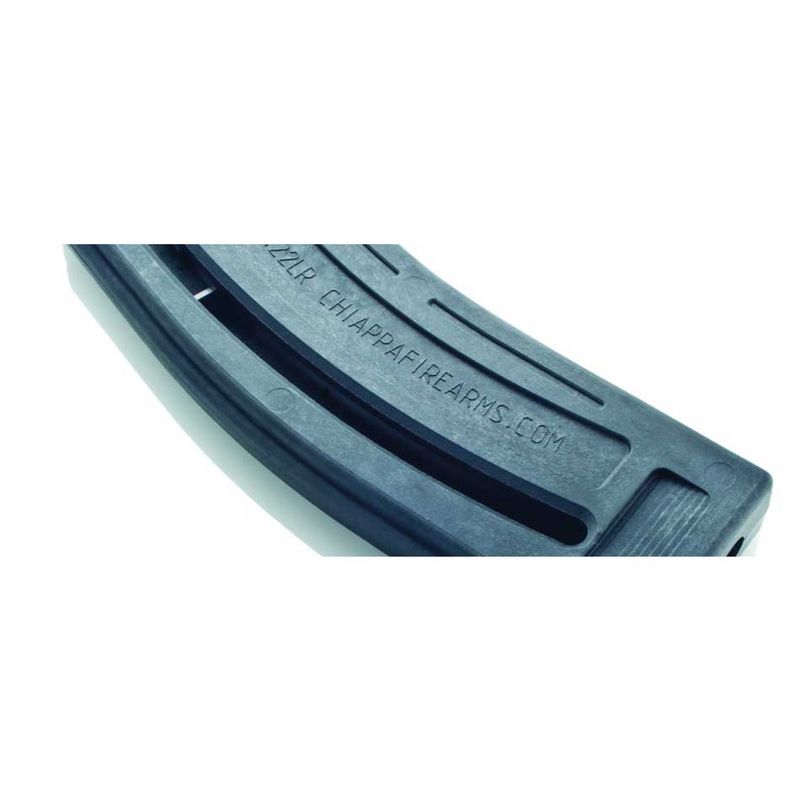 Esta versão do MFOUR-22 Gen III da Chiappa vem com dois carregadores de 28 tiros cada. Seu carregadores possuem tamanho similar aos dos calibres 556, dando um acabamento muito mais realista ao rifle.
