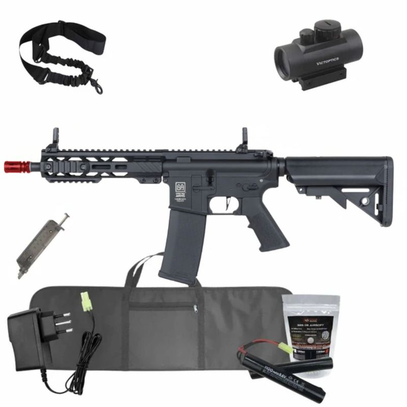 ArmasArmas de AirsoftArmas Longas: Rifle e CarabinaRifles Elétricos AEGRifle M4 SA-F08 G2 Black Specna Arms Airsoft Super Kit