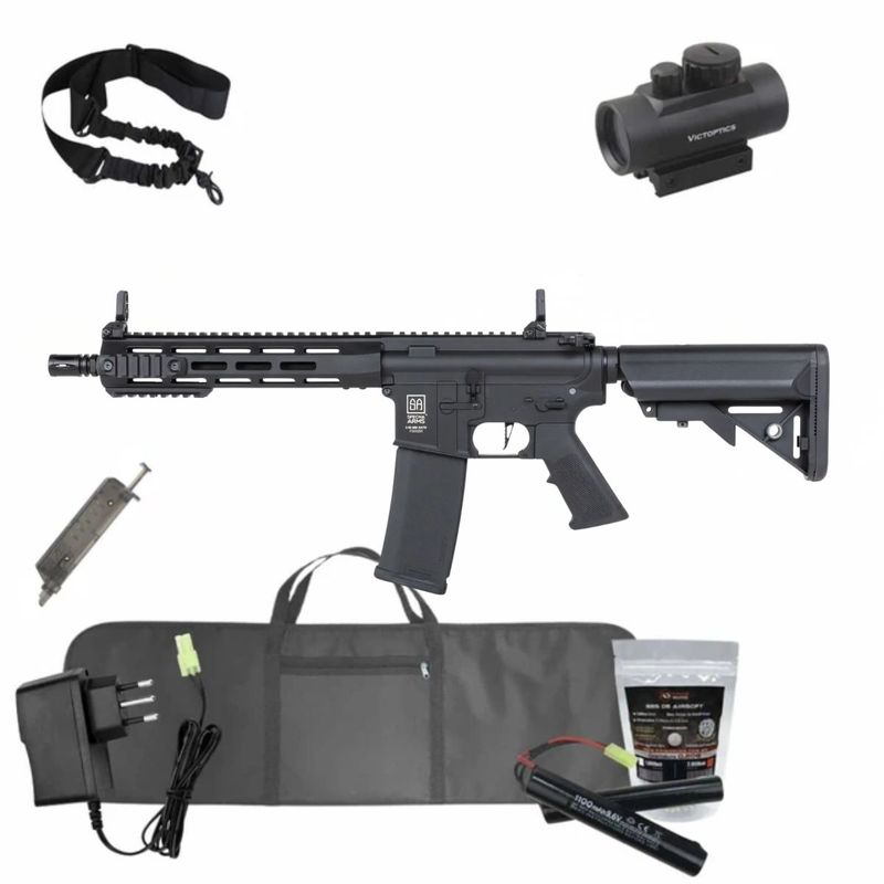 ArmasArmas de AirsoftArmas Longas: Rifle e CarabinaRifles Elétricos AEGRifle M4 Specna Arms SA-F03 G2 Airsoft Black Super Kit