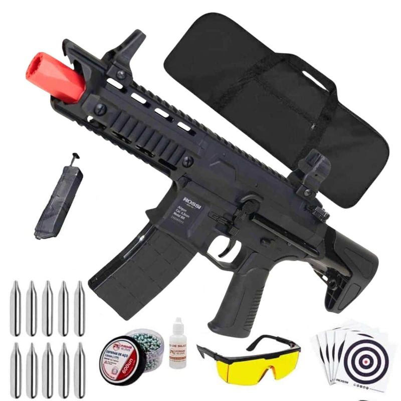 O Rifle Rossi M4 Dragon PDW 4,5mm Co2 Full Auto Metal Kit dispara no modo Semi e Full Automática com velocidade de 430fps - 131m/s e energia de 3,1 Joules Ver mais