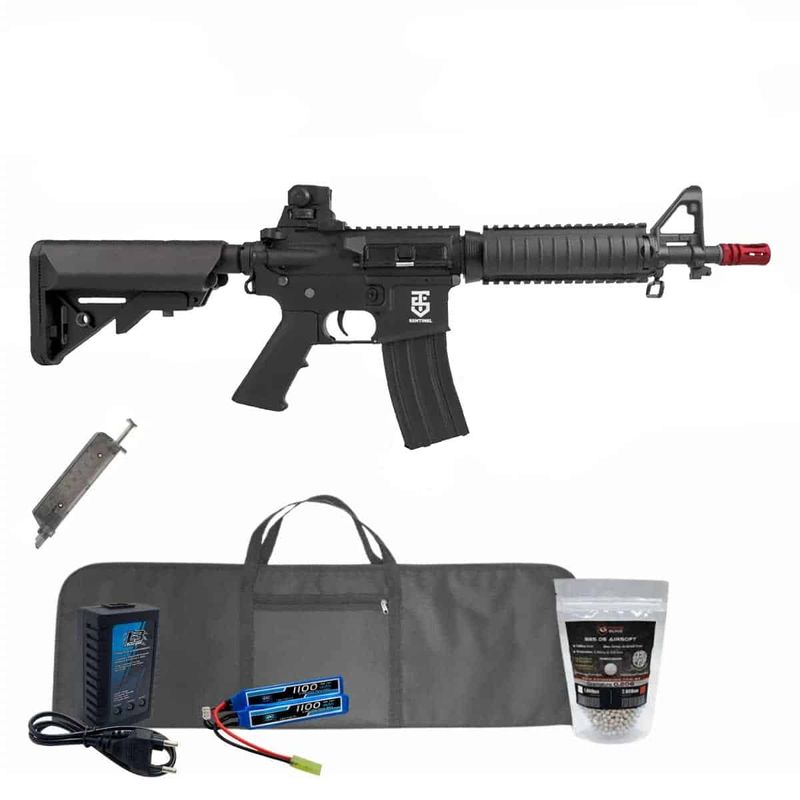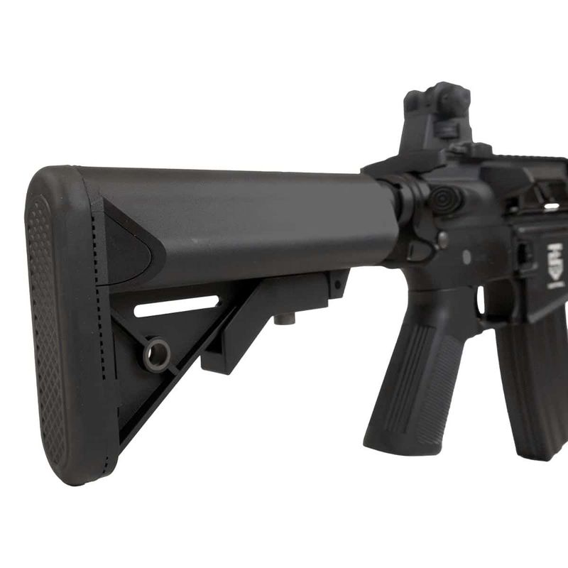 O rifle Sentinel M4 CQB-R possui cano de precisão de 6,03mm, cano externo de uma peça, coronha regulável, motor de alto torque com 25.000rpm e um conjunto de engrenagens CNC aprimorado.